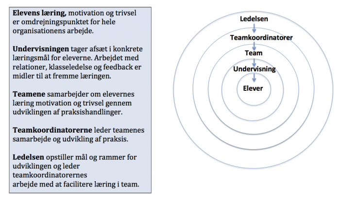 De bedste resultater opnås, når alle niveauer i organisationen arbejder sammen om at fremme elevernes læring og trivsel.